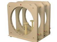 HM-3-900型線(xiàn)圈就是在亥姆赫茲線(xiàn)圈的基礎上,改進(jìn)后的三線(xiàn)圈亥姆赫茲線(xiàn)圈組,經(jīng)過(guò)計算模擬仿真實(shí)踐,三個(gè)線(xiàn)圈的半徑都為R時(shí),中心線(xiàn)圈到兩個(gè)線(xiàn)圈的距離為0.7R, 中心線(xiàn)圈的匝數為兩邊線(xiàn)圈匝數的0.5倍,